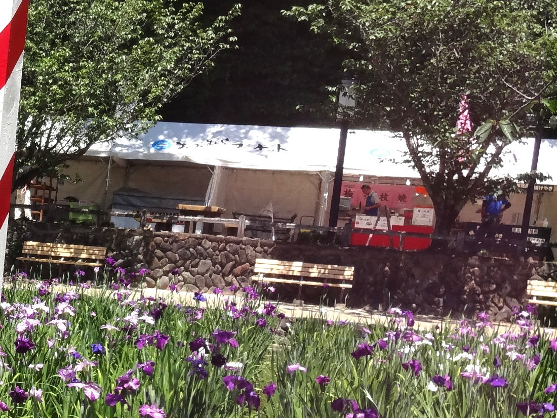 公園の入り口近くにあった案内所で貰ったリ−フレットによるとやはり今週末には「花菖蒲まつり」が開催されて熊本から「鉄砲隊」もくるそうですし