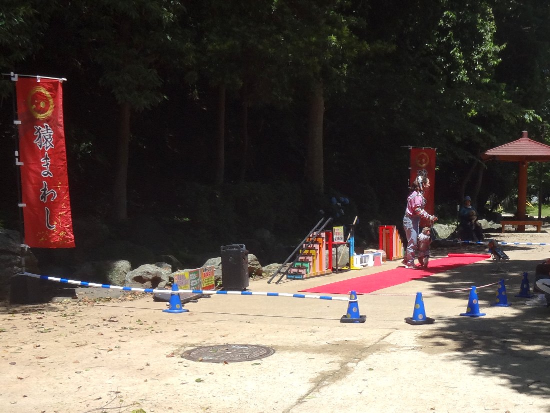 トイレの横のスペースで何やら行われるみたいですが・・・「猿回し」ですって(^^;