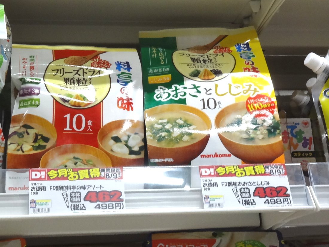 何気に見かけた「マルコメ」の「フリーズドライ」の味噌汁ですが10食入りで498円は安いのじゃないでしょうか