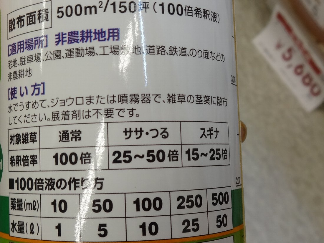 「ダイソー」や「トライアル」と違ってちゃんと「100倍希釈」でした