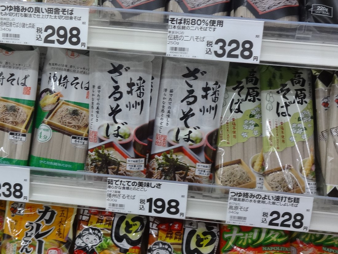 「コスモス」で販売していた「播州ざるそば」は400gで198円ですから安いですよね