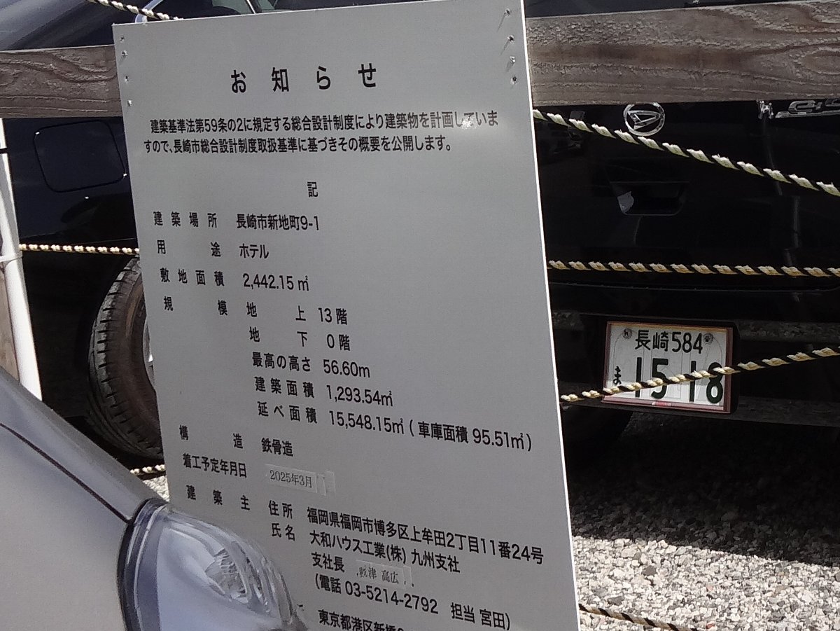 この駐車場が安いのには当然理由があって来年工事が始まるそうですが「ホテル」が建つそうですね・・・「大和ハウス」が建設するのでビジネスホテルの「ダイワロイネットホテル」が建てられるのかもしれませんね