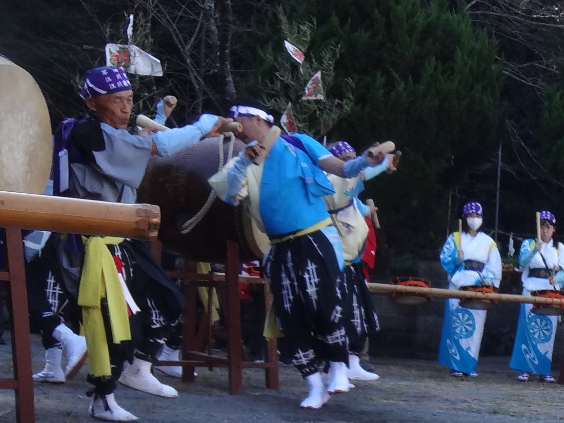 この太鼓の上で舞うという所作はこの浮立と「平山くんち」の「庭浮立」でしか見たことがありませんからずっと続けて欲しいですね