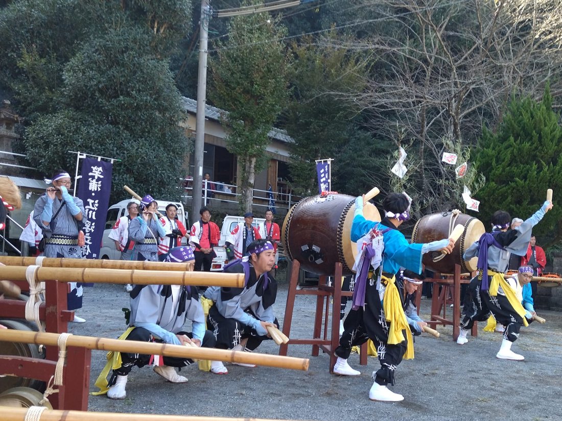 「小ヶ倉くんち」で「小ヶ倉・上揚獅子舞」を見た後は「土井首大山祇神社」に向かいました・・・この神社では「土井首くんち」が行われ隣町の「竿浦大山祇神社」の奉納踊りである「竿浦・江川浮立」が出張奉納されるのです