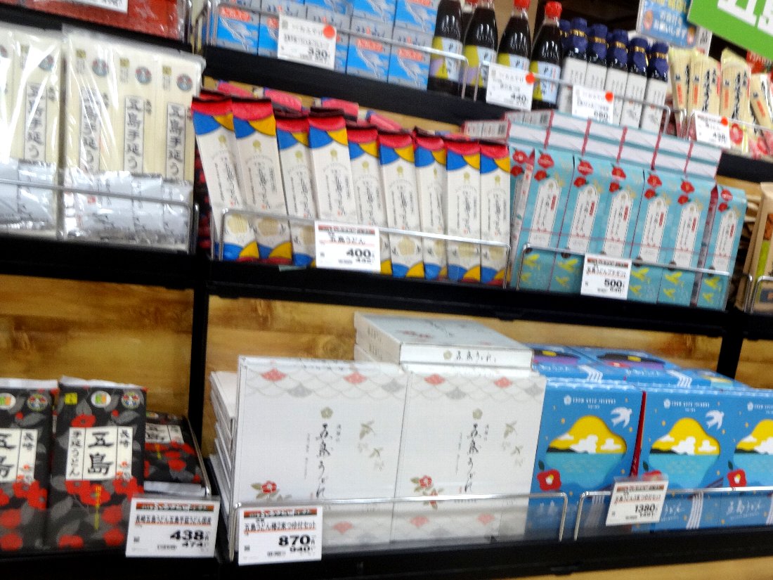 「夢彩都」地下の食品コーナー横には「五島うどん」が数多く展示販売されていますが