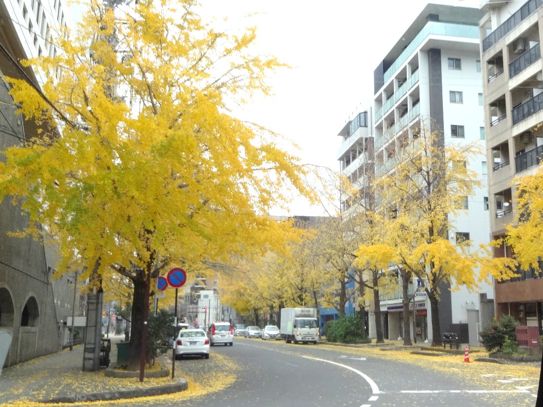 市民会館横のイチョウは散り始めていました(T_T)