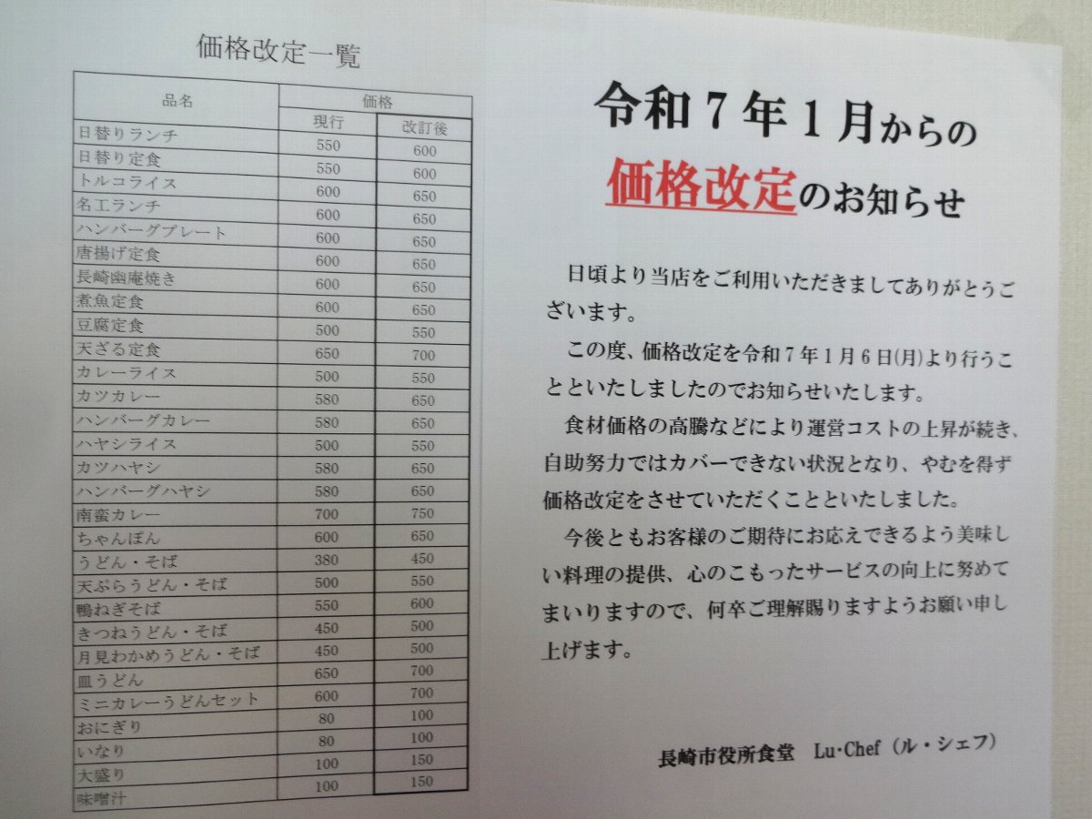 まぁここに移転してから1度も値上げしていなかったからしょうが無いでしょうね・・・長崎県庁なんてしょっちゅう値上げしていますから