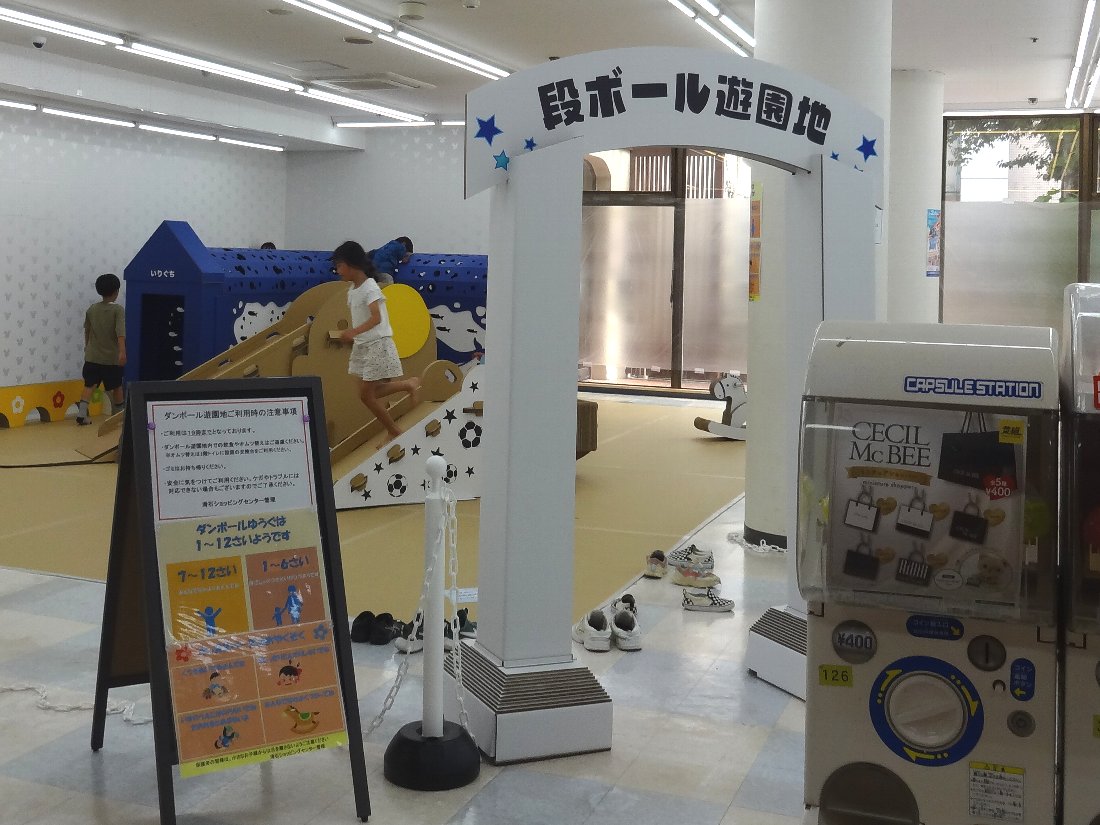 先日書きましたがここにあった書店が閉店しました・・・その跡に何と「ダンボール遊園地」が設置されていました(゜o゜)