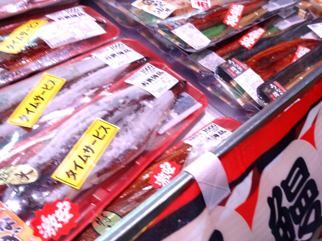 以前も何度か購入した「ウナギ」が安く販売していないかなと思いやって来たのですが・・・「タイムサービス」で「中国産 特大ウナギ」が1080円で購入出来ました(^^)v