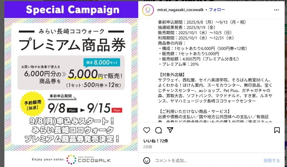 最近長崎市内のあちこちの商店街で行われている「プレミアム商品券」の「ココウォーク版」も9/8から販売するそうです