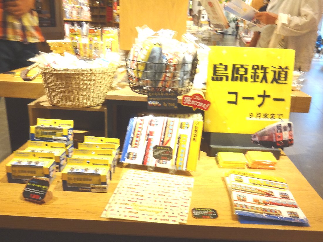 「ツタヤ」のエレベーター前では「島原鉄道コーナー」が設置され
