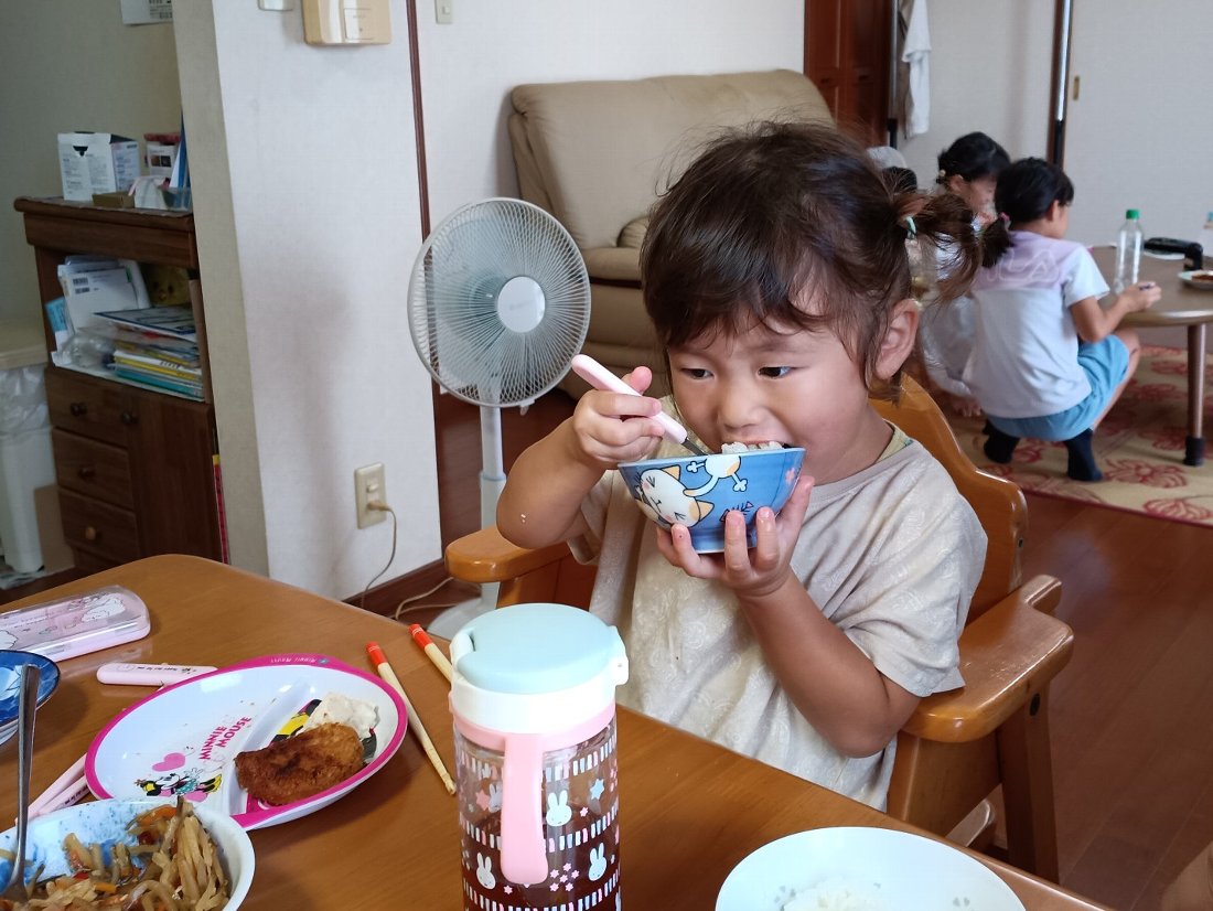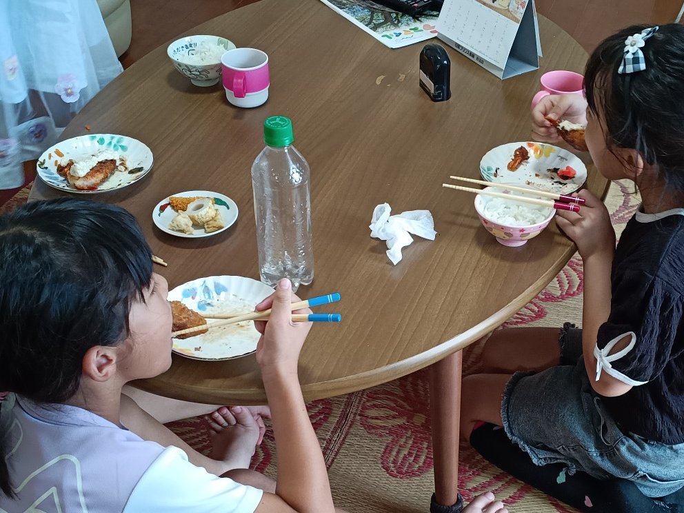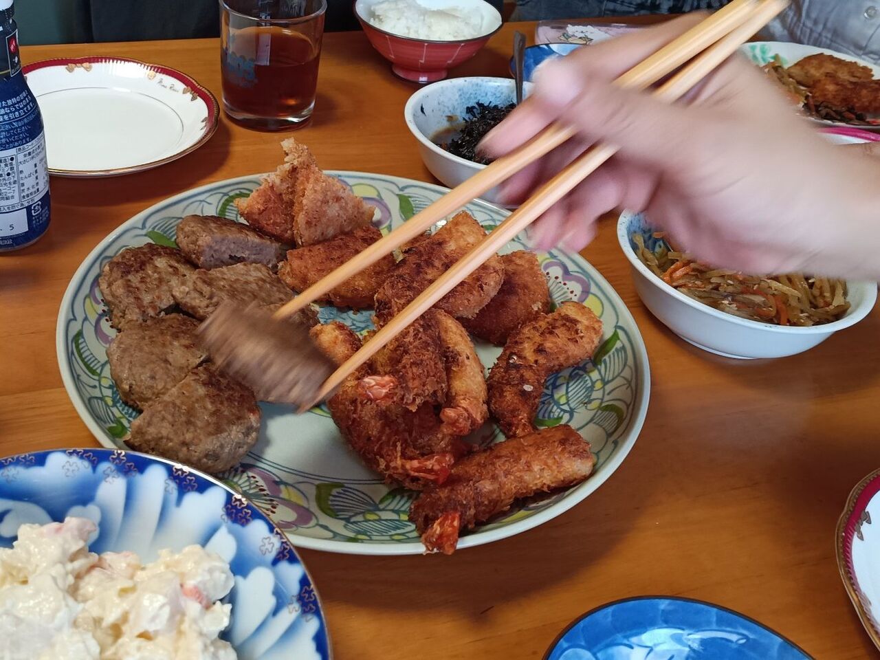 お昼になると孫用にハンバーグやエビフライなどを用意しましたが