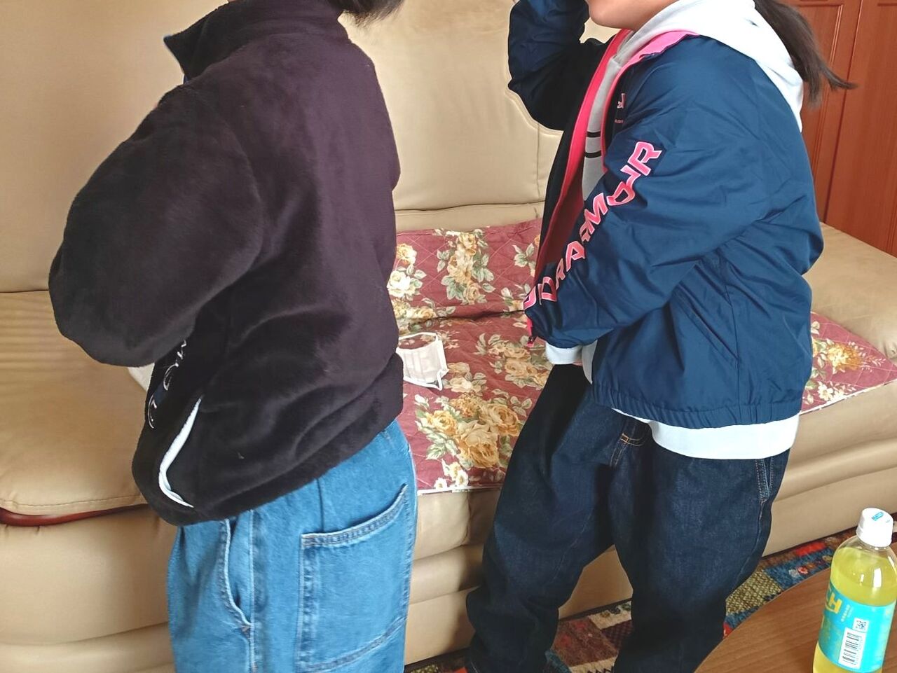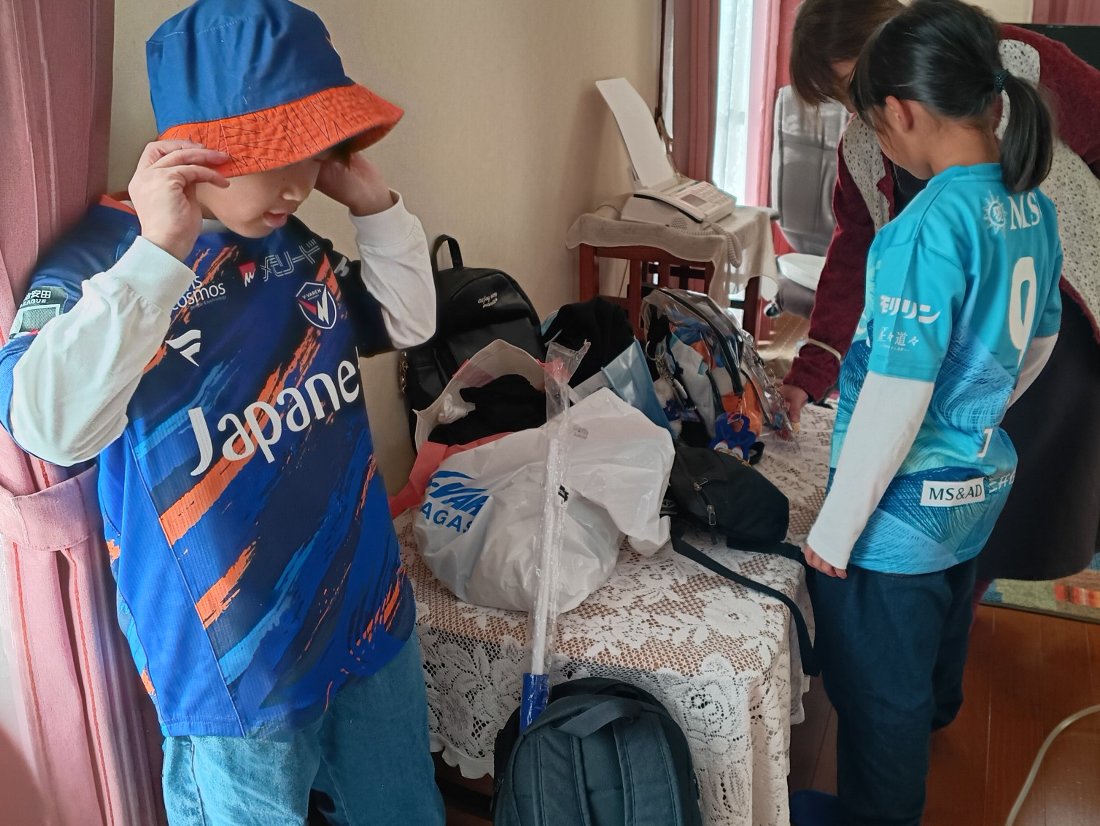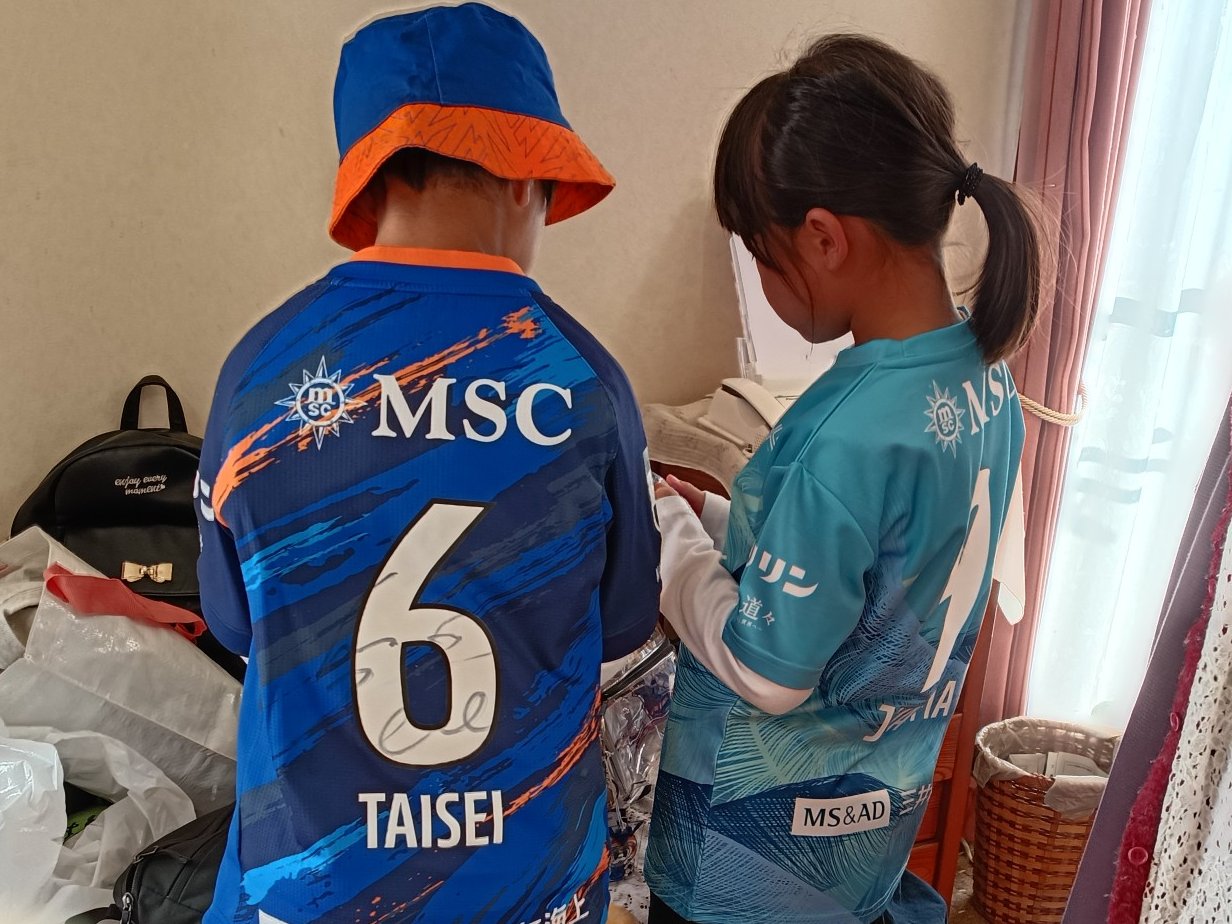 孫の二人は「V・ファーレン長崎」愛に満ちたグッズのリュックを持っていますし