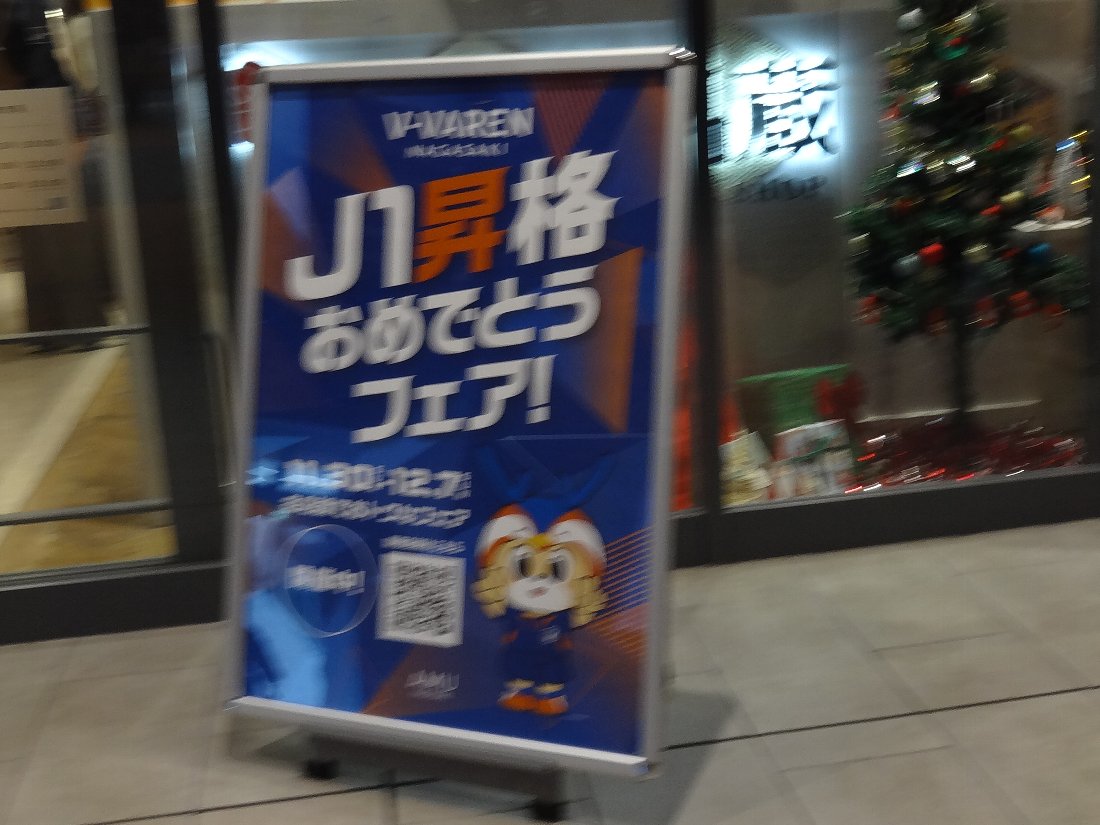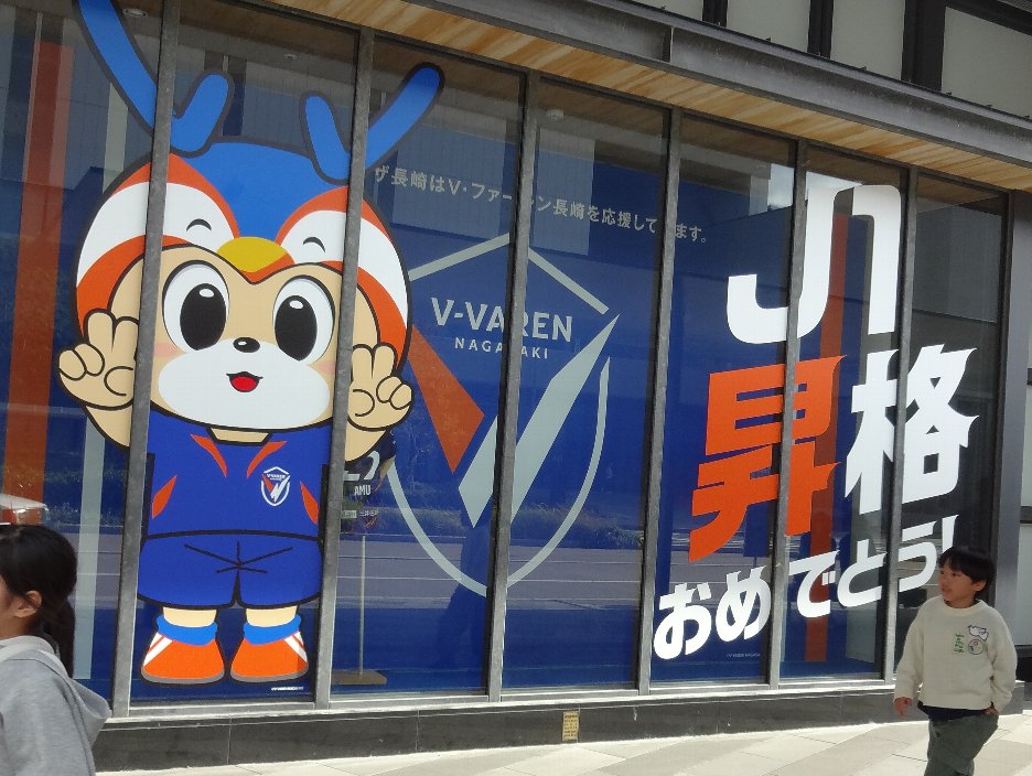 例によって「60分無料」の長崎県庁駐車場に車を停めて歩いて向かったのですが、長崎駅に飾られていた「V・ファーレン長崎」のPRコーナーが「J1昇格おめでとう」になっていましたし
