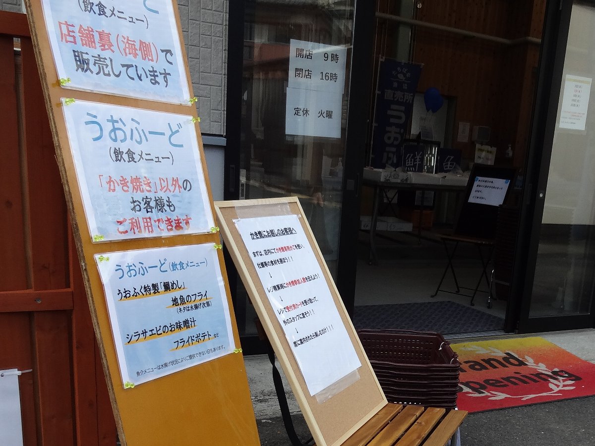 店内で購入した魚介類を併設された「カキ小屋」で焼いて食べることができるそうです