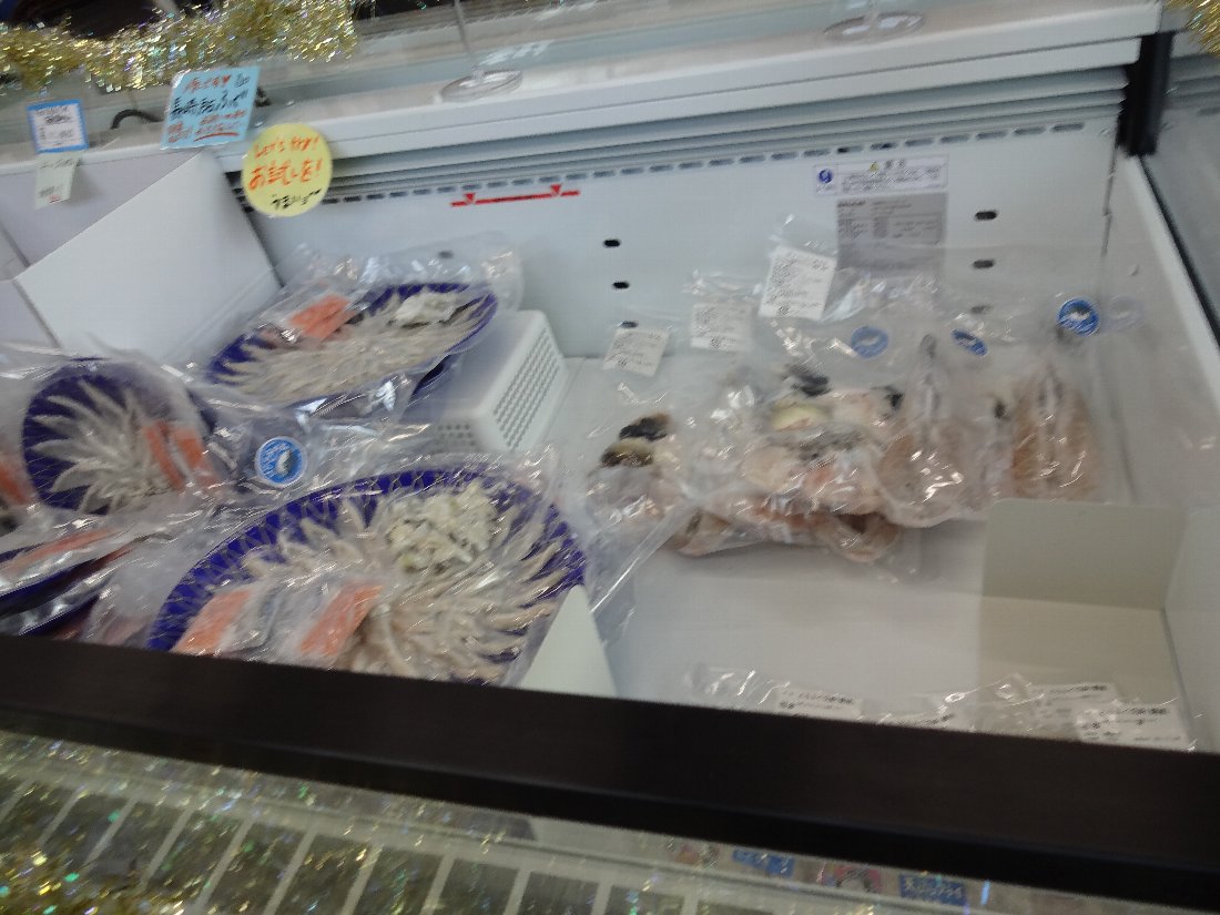 店内にはいろんな魚介類が販売されていますが