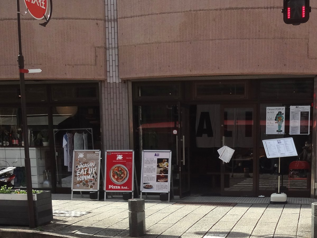 「ホテル モントレ長崎」の先にも見覚えが無いお店が並んでいますが「ALI(アリ)」というナポリピザもあるカフェだそうで2年ほど前にオープンしたそうです