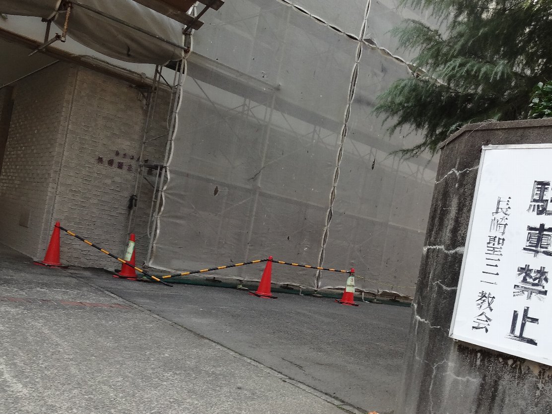 「ニュータンダ」の向かいにあるプロテスタントの「長崎聖三一教会」も工事中でしたが、こちらは改装工事みたいです
