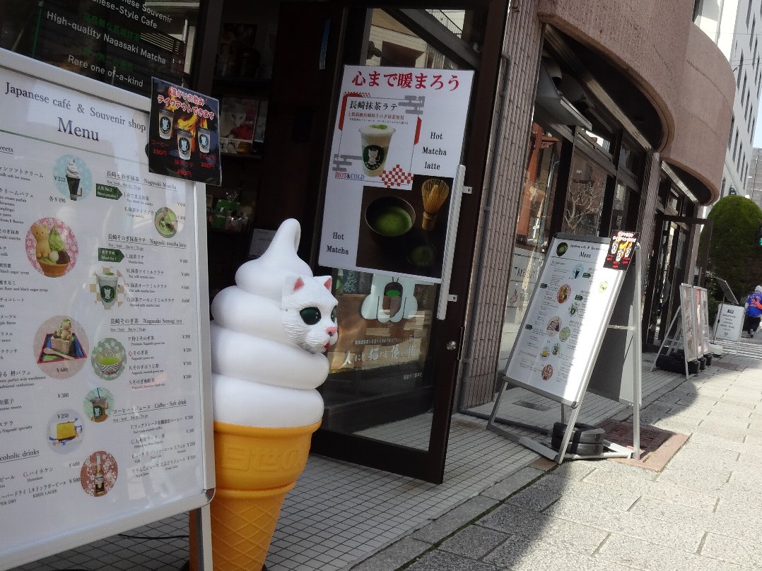 その並びには「長崎抹茶ラテ」が名物の「尾曲がり猫茶屋」ですが「猫の日(2/22)」で1周年になったそうです・・・銀屋町にある「尾曲がり猫神社」の姉妹店だそうですね