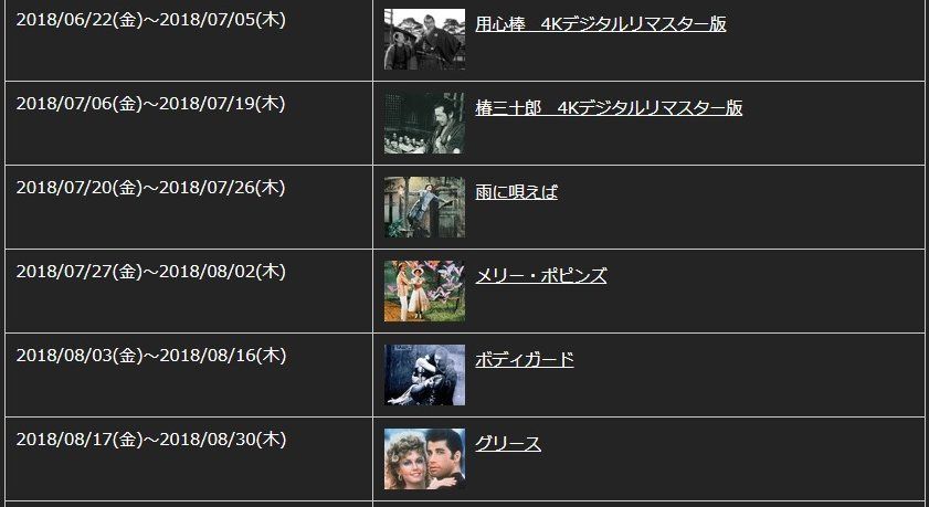 さらには6/8からは「七人の侍」「用心棒」「椿三十郎」という黒沢作品が連続上映されますが「七人の侍」以外は映画館で見たことが無いので見に行きたいですね