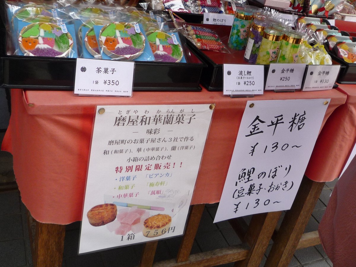 パーキングに戻る途中で見かけた「岩永梅寿軒」の店頭に並んでいる和菓子の数々・・・このお店と先ほどの「萬順」や洋菓子の「ビアンカ」と共同で「磨屋和華蘭菓子」というのを販売しているそうですが、「磨屋小学校」卒業の女房はかなり心惹かれていたみたいです(^^;