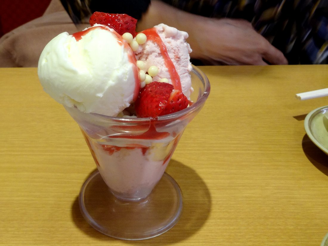 例によって「お腹が膨れると美味しさが判らない」と女房は最初にデザートを注文していましたが結局「ホワイトチョコといちご好きピパフェ」にしたみたいです(^^)