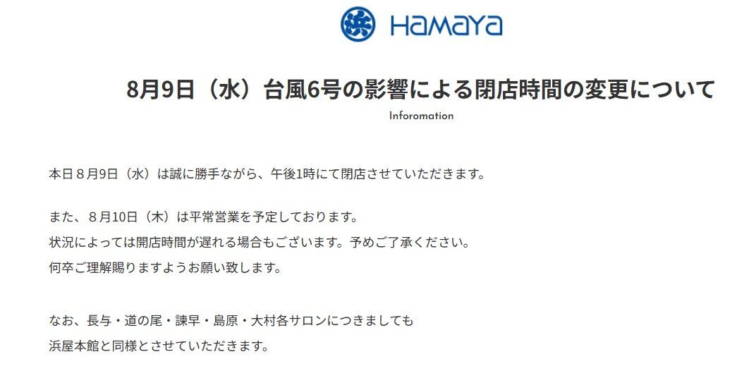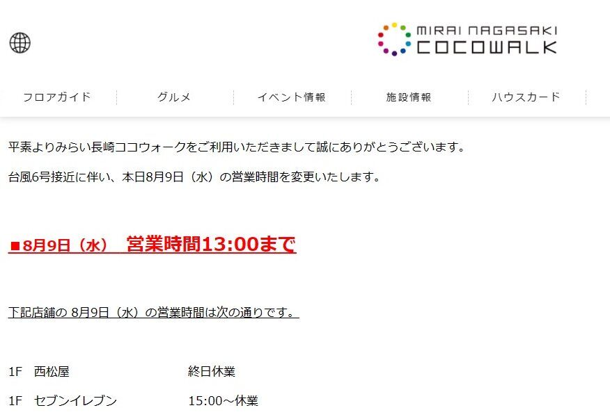 8/9は台風の影響で「アミュプラザ長崎」を始め