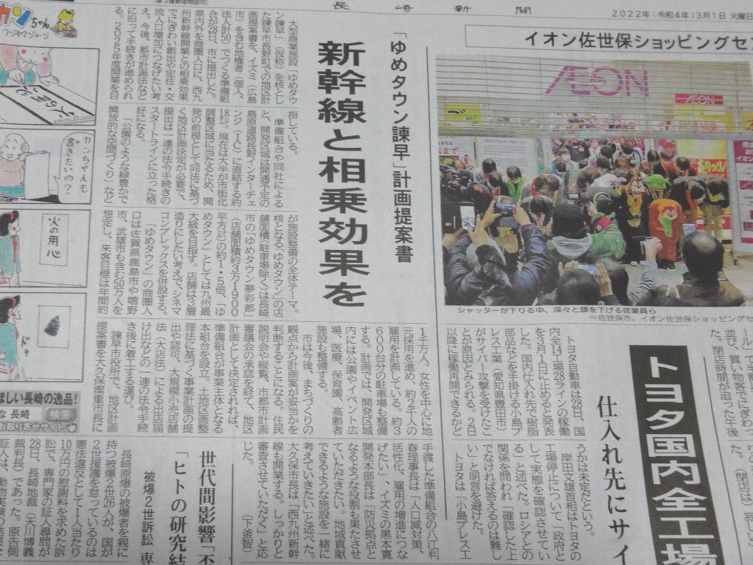 昨日の長崎新聞に一昨年以来となる「ゆめタウン諫早」の記事が載っていました