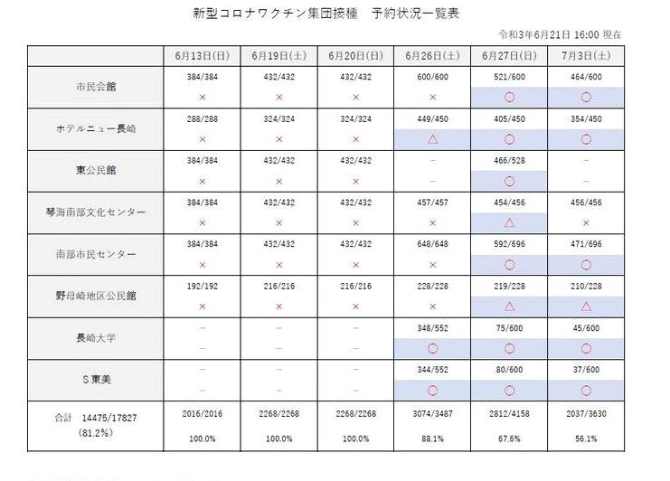 長崎市では今までの「市民会館」や「ホテルニュー長崎」に加えて「S東美」と「長崎大学」も集団接種会場に追加したそうです・・・でもどこの会場でも週末しか接種を行わないんですよね