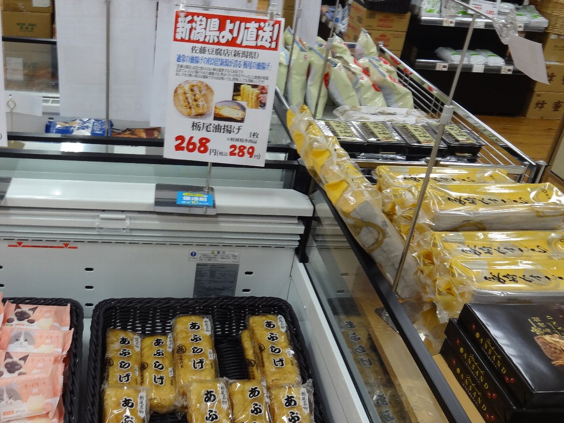 毎週火・金に入荷する「栃尾の油揚げ」を購入するのが目的です・・・食品売り場には常に「油屋久助商店」のを販売しているのですがこちらの「佐藤豆腐店」のが安いし味も私たちの好みなんです(^^)