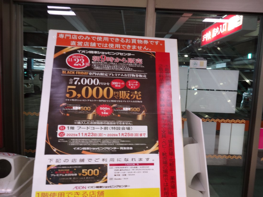そんな訳でちょっと「イオン時津店」に行ってきましたが無論覗くだけで買う気は全くありません・・・入口に大きく「プレミアム商品券」の案内がありましたが「直営店でしか使えない」のを購入する人がいるのでしょうか?