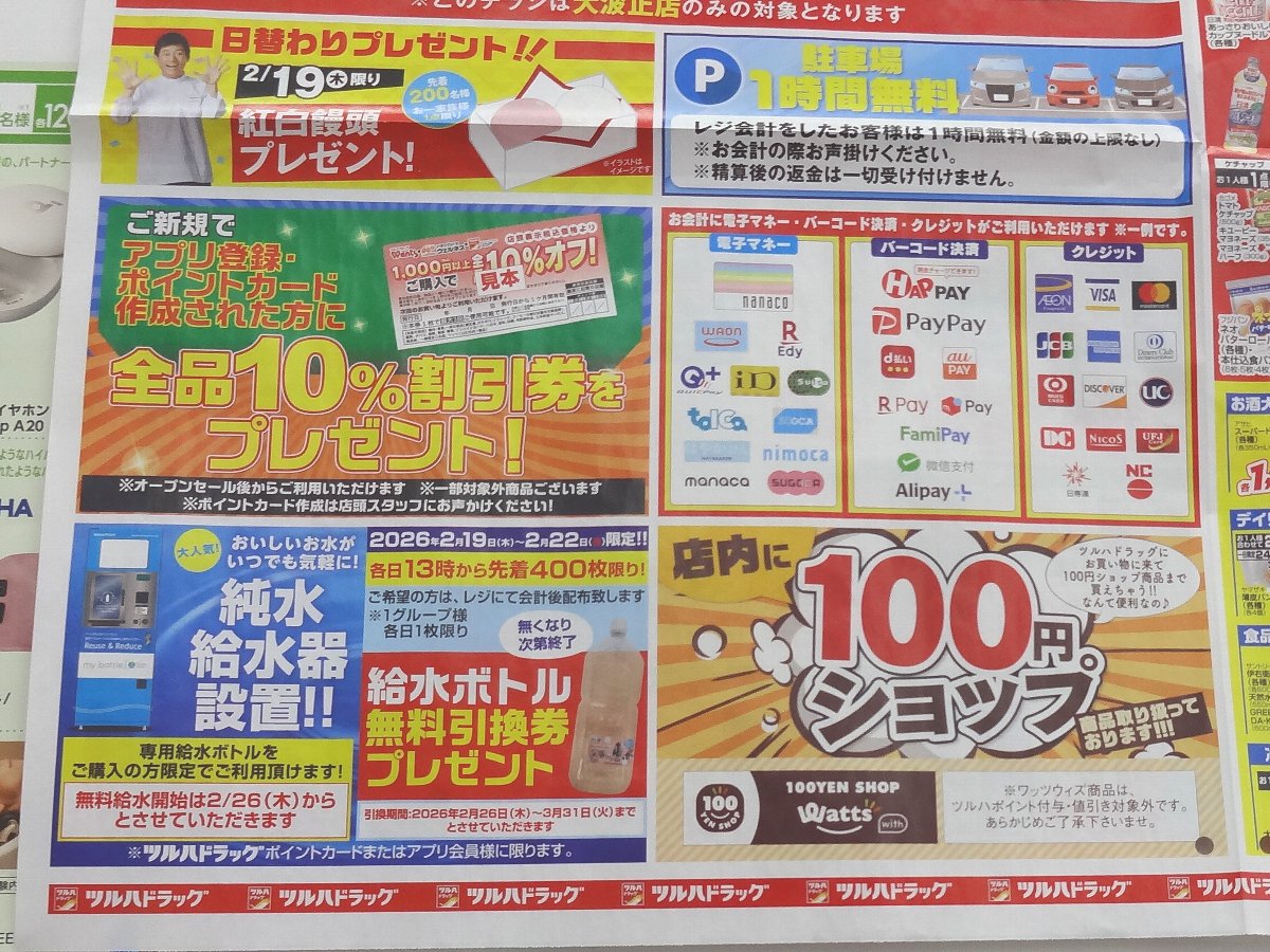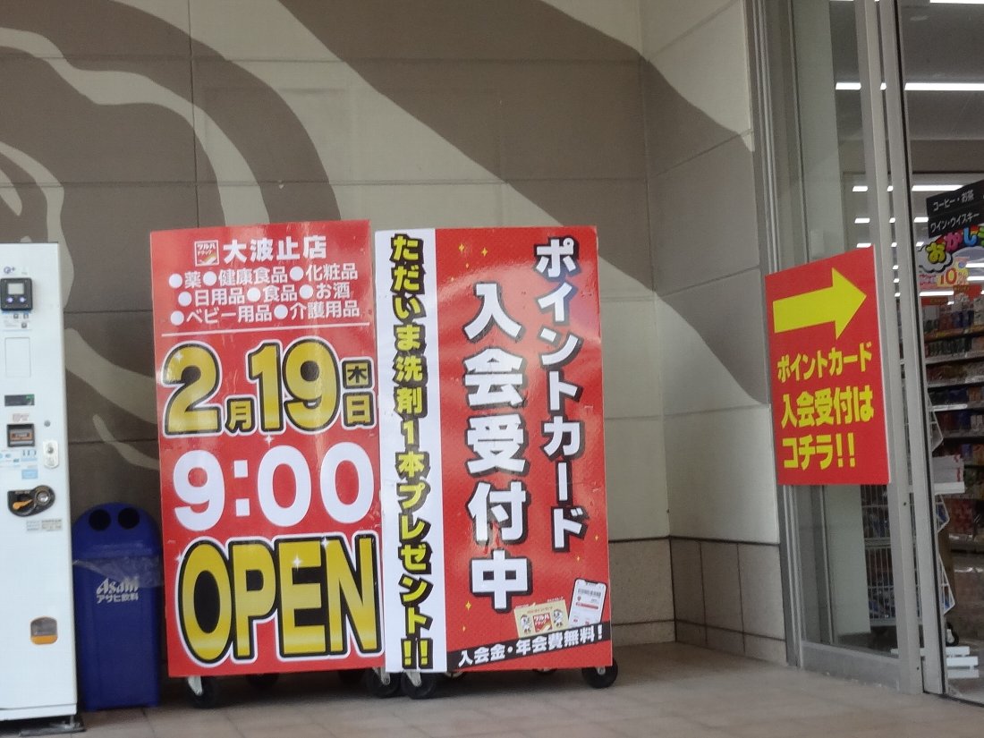 大波止を通ると前回「オープン予定」だった「夢彩都」隣の「ツルハドラッグ大波止店」がオープンしていたので寄ってみることにしました