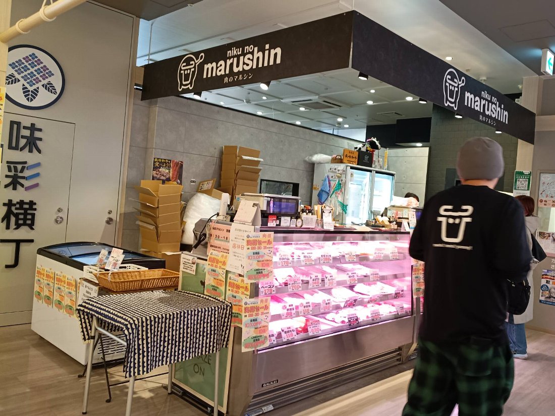 ついでに「味彩横丁」もちょっと覗いてみましたが以前「新大工町市場」だった頃にあった「肉のマルシン」が戻っていました(゜o゜)