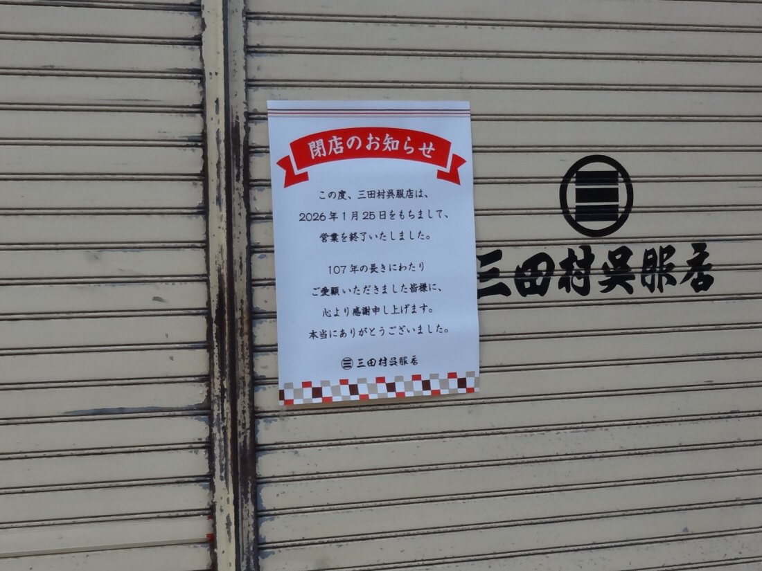 「三田村呉服店」の閉店もやはり時代の流れでしょうか