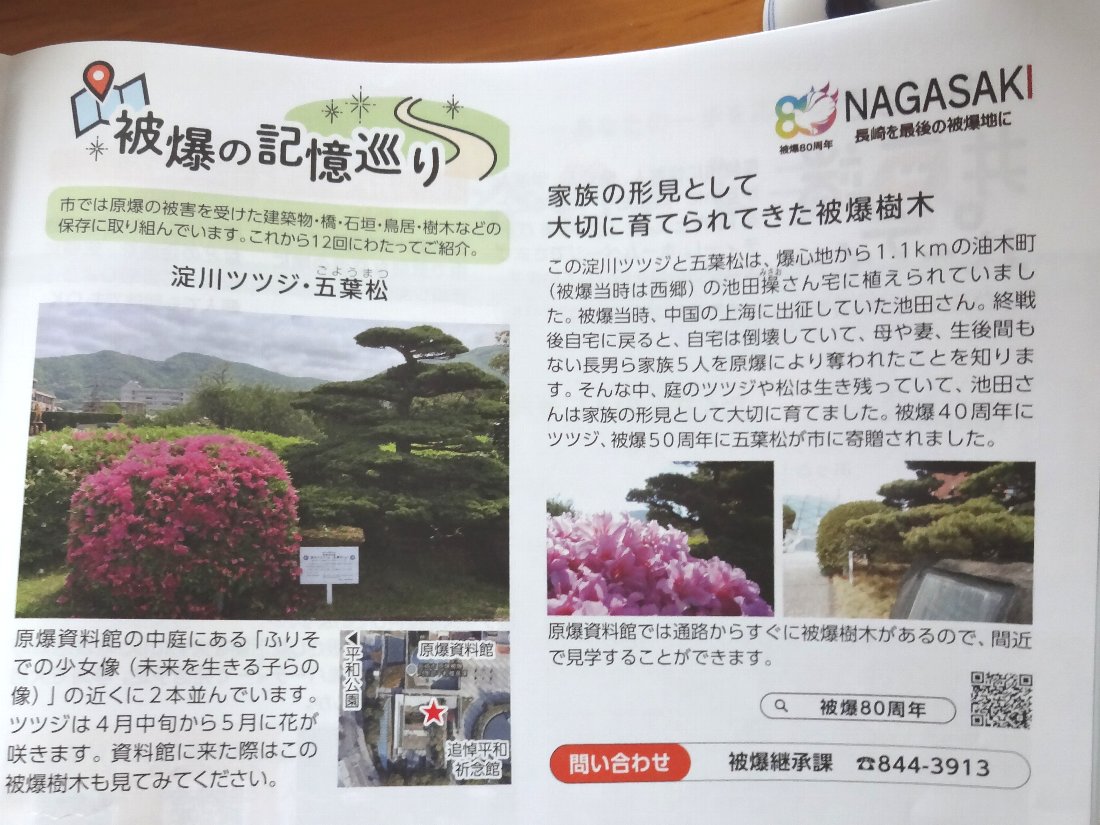 長崎市の広報を見ると原爆資料館にあるという「淀川ツツジ」が紹介されていました