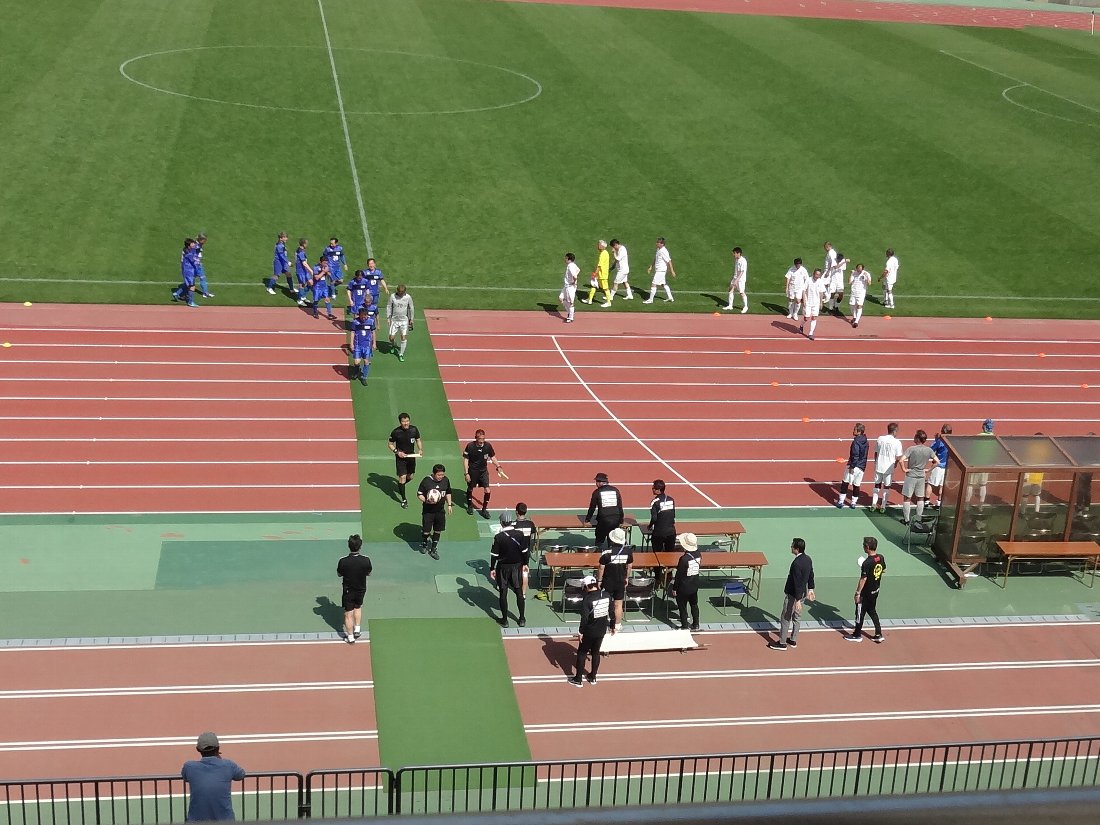 「かきどまり陸上競技場」に来ましたが、散歩途中に寄ったのを別にすると10数年前に「V・ファーレン」のゲームを見に来た時以来かもしれません・・・当時はこんな競技場でもJ2の試合が行われていたんですね