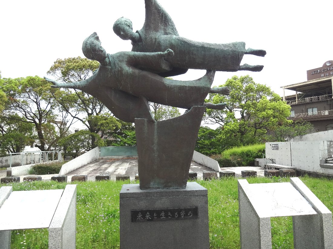 あらためて「大淀のツツジ」を見に向かいましたが「原爆資料館」に行く途中に「ふりそでの少女像(未来を生きる子らの像)」が展示されていて