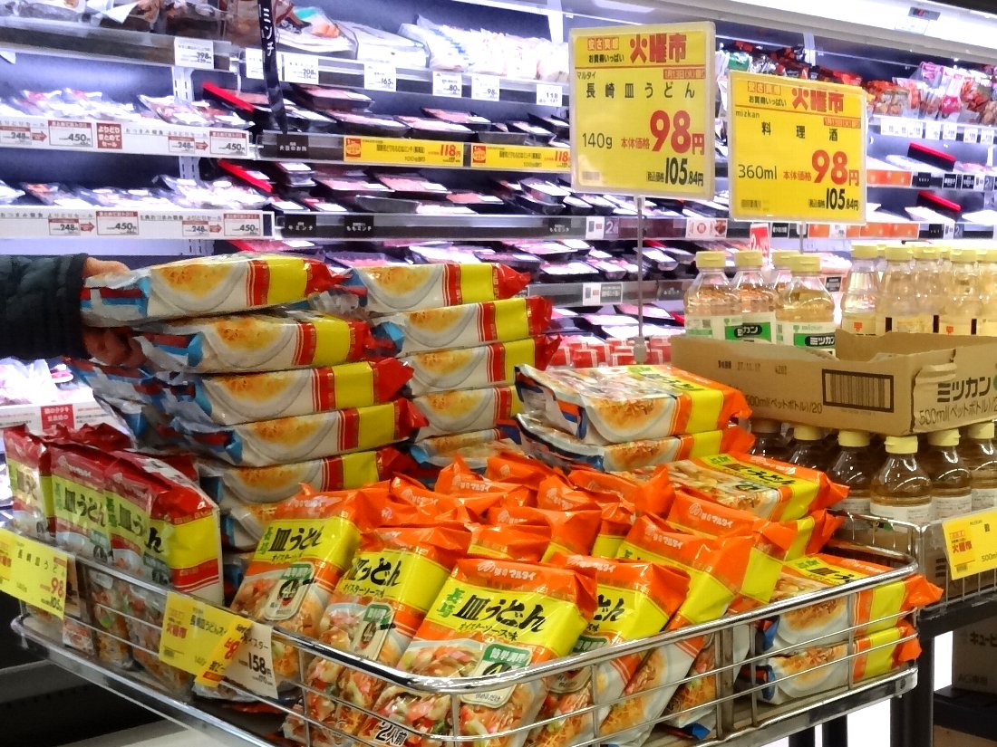 何故かマルタイの「皿うどん」はチトセピア(イオン)の「火曜市」の時に他店を圧倒する安さです・・・ほかの店では安く販売する場合は110gが多いのですがチトセピアでは140gを100円ちょっとで販売しています