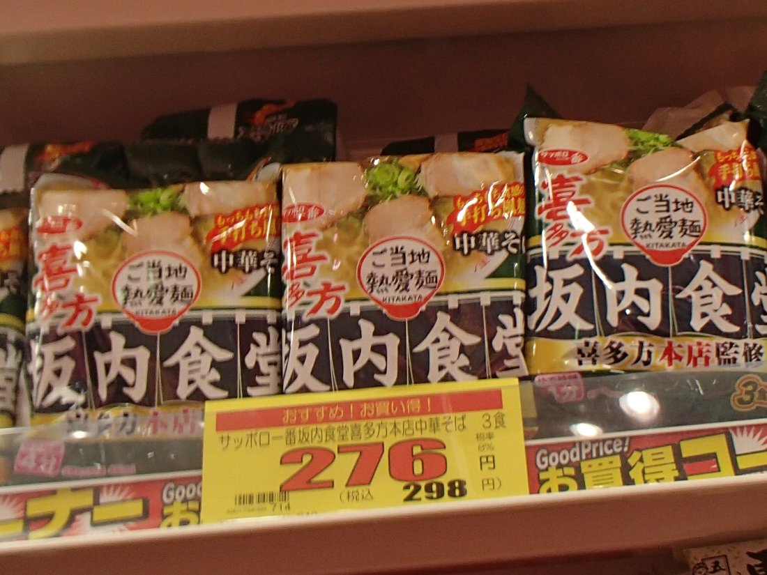 ずっと以前に「キャナルシティ博多」のラーメンスタジアムで食べたことがある喜多方の「坂内食堂」の袋麵もありました(^^;
