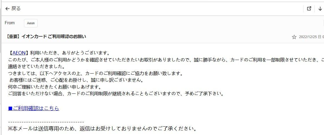 無論電話だけでなく「メール」も頻繁に来ますね・・・「アマゾン」あたりならともかく「イオン」の名前を使うとだまされる年寄りがいるかもしれませんから家族の人は注意したほうがいいかもしれません