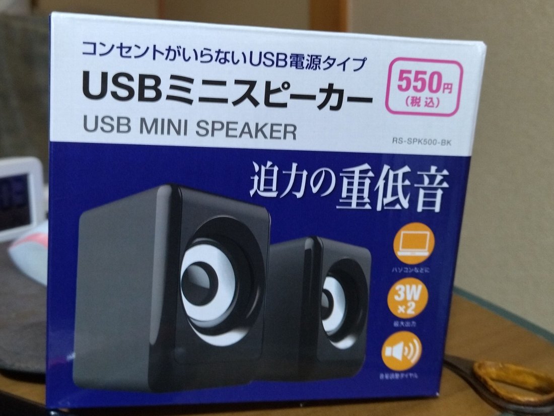 ネットで検索してもヒットしませんでしたが、ここに「USBミニスピーカー」がありました(^^)v