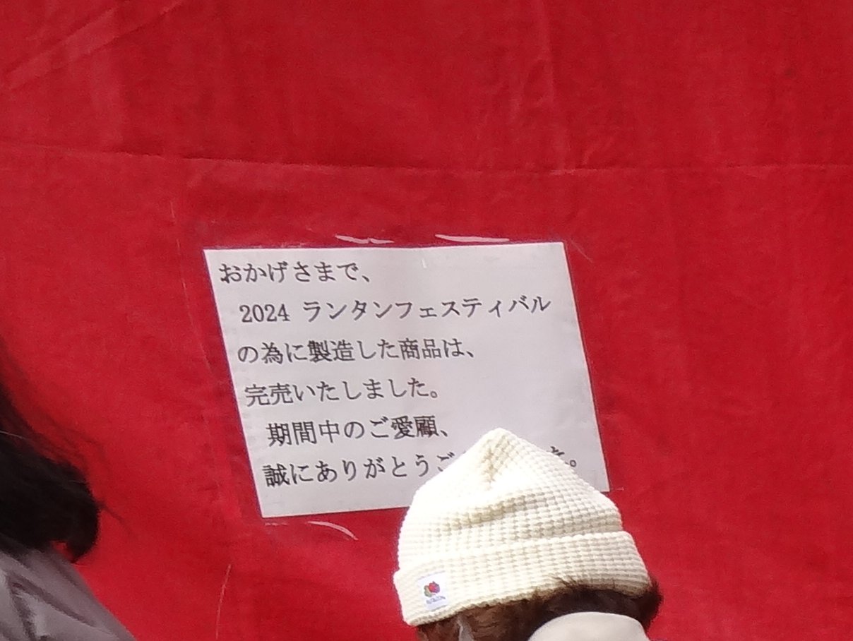 毎年中華街の「湊公園側入り口」に出店している「蘇州林」はランタンフェスティバル用の商品が完男売したそうです