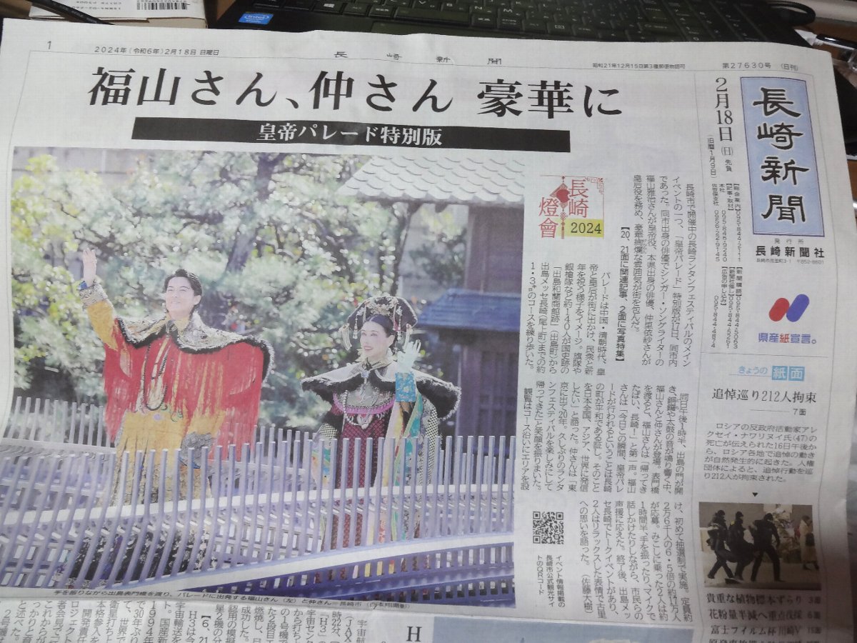 先週末「長崎ランタンフェスティバル」では福山雅治さんと仲里依紗さんによる「皇帝パレード」が行われましたね