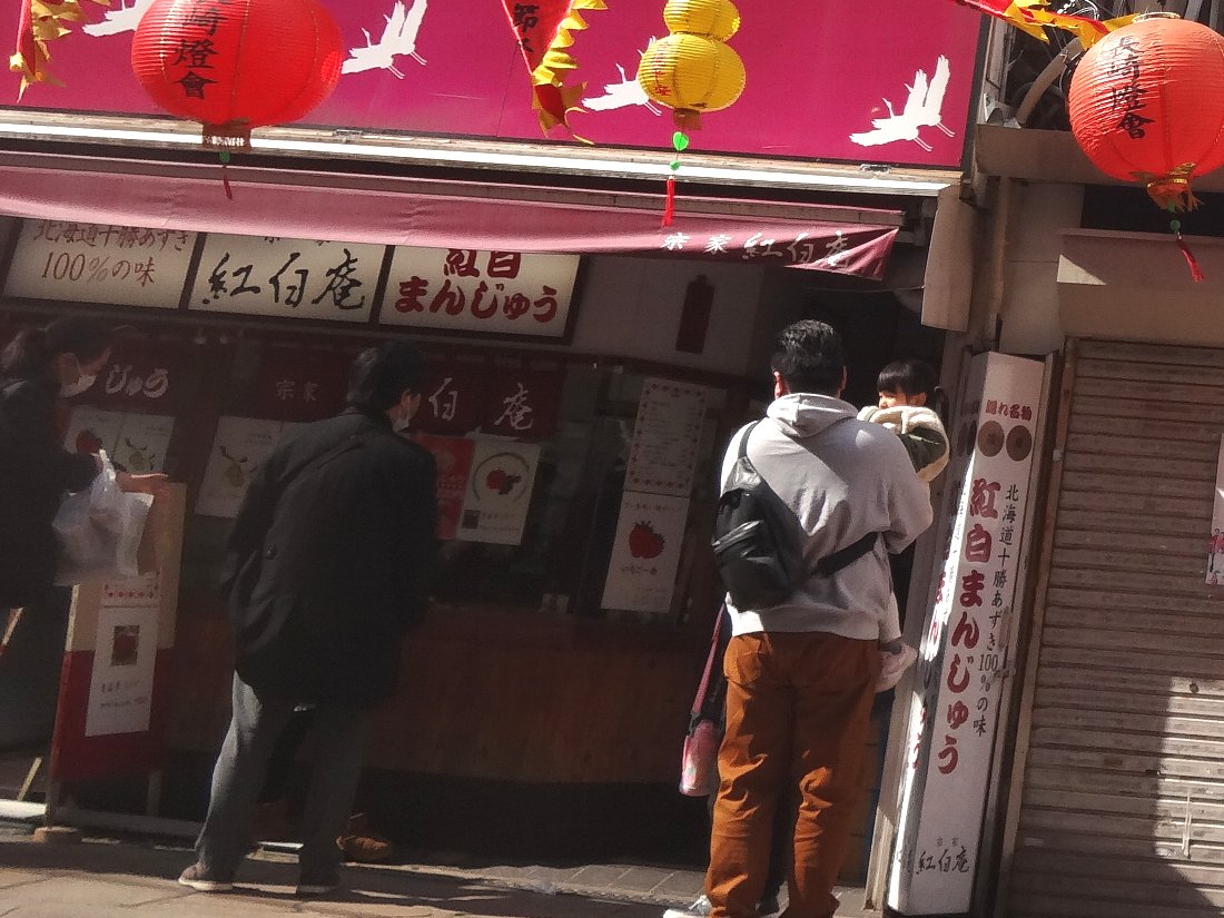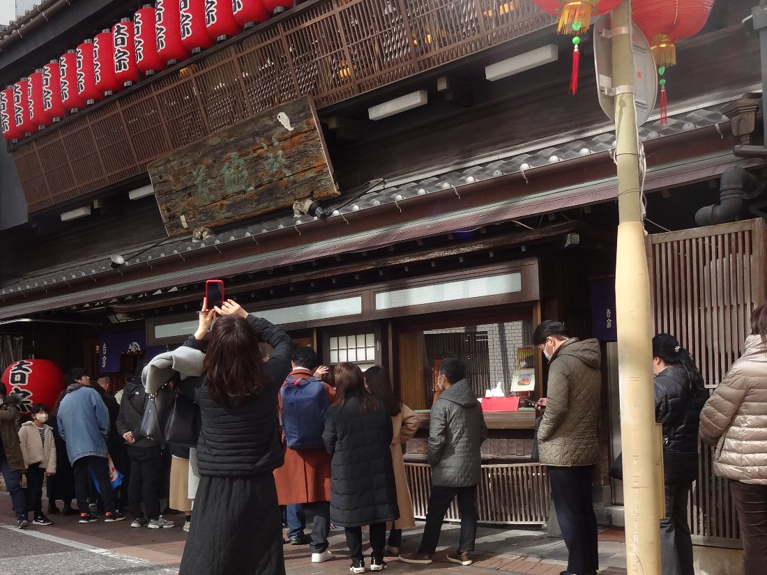 その手前にある「紅白まんじゅう」の「紅白庵」に行列が出来ているのを初めて見ました(゜o゜)
