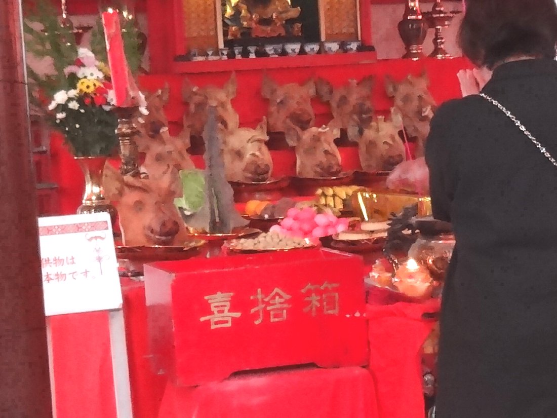 「関羽」を祀った祭壇に飾られている「豚の頭」を見るのも久しぶりです