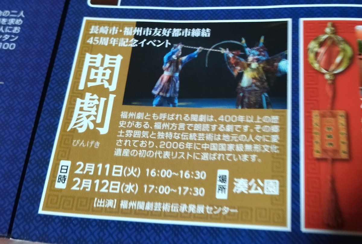今年は「閩劇(びんげき)」という「400年以上の歴史を持つ福州語で演じられるオペラ」だそうですから日本で無料公演が行われるのは珍しいのじゃないでしょうか?
