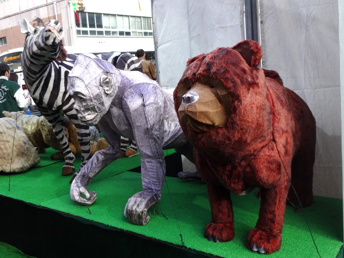 最後はマイクを使い中国語を交えて挨拶しますが、人形やマスクなどグッズの案内も行っていました(^^;