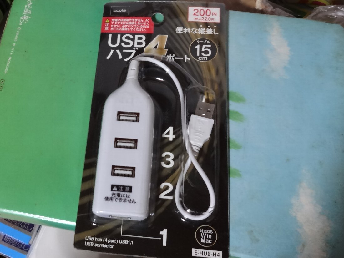 以前「ダイソー」で「USBハブ」を500円で購入しましたが、イマイチ調子が良くないので「キャンドゥ」で買い直しましたが今度は200円でした(^O^)