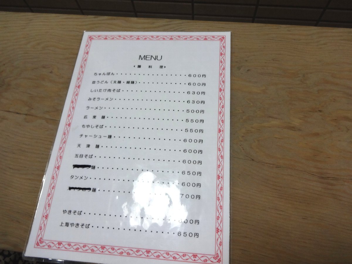 8年前のメニューと比べると「ちゃんぽん・皿うどん」は50円くらい高くなっていますがラーメンは500円で変わっていませんね(^^)