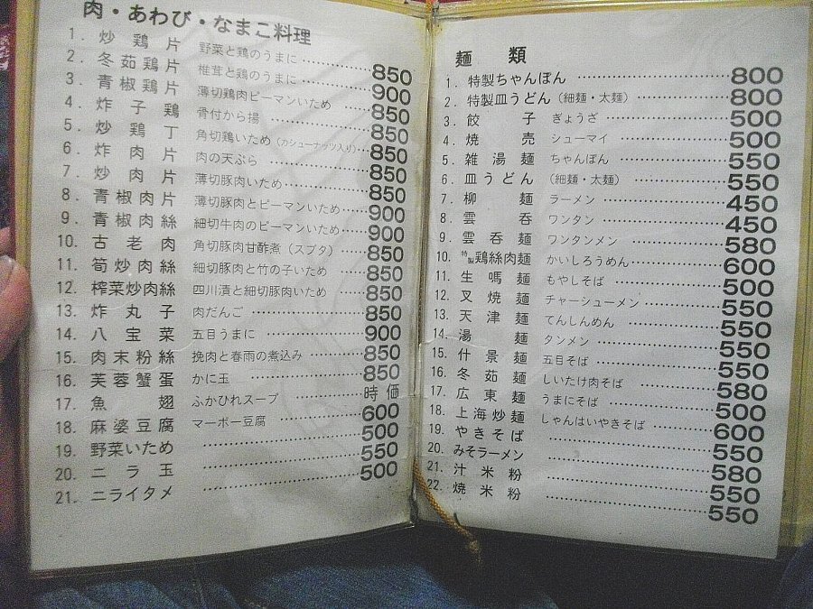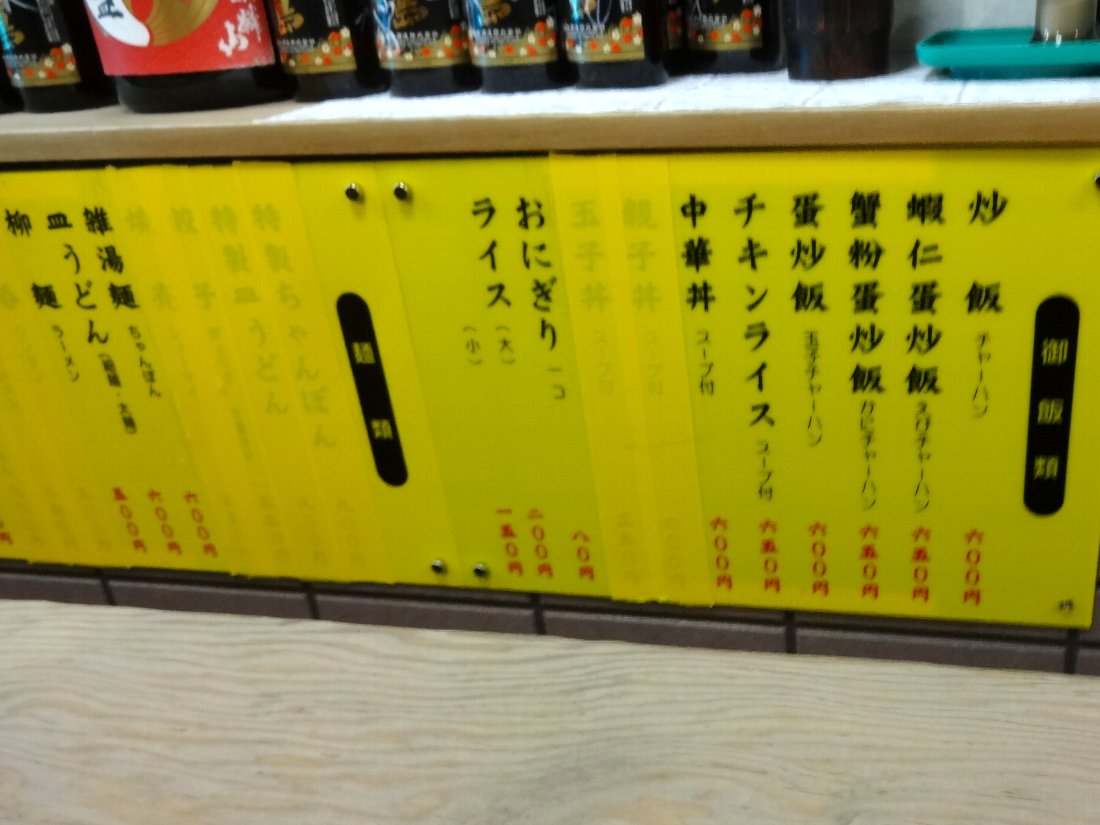 以前のメニュー表ですが「餃子」や「焼売」も無くなっているみたいです・・・久しぶりにお会いした奥様の話だと創業者のご主人が無くなられて息子さんが跡を継いだみたいですね